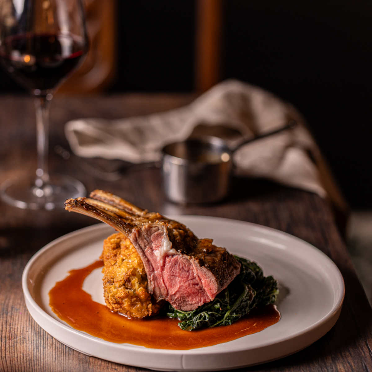 British rack of lamb, pulled lamb croquette, buttered cavolo nero, gravy 1270 kcals